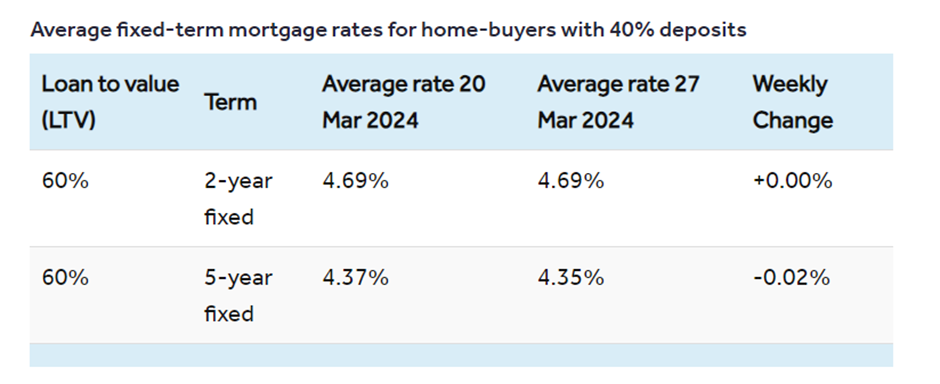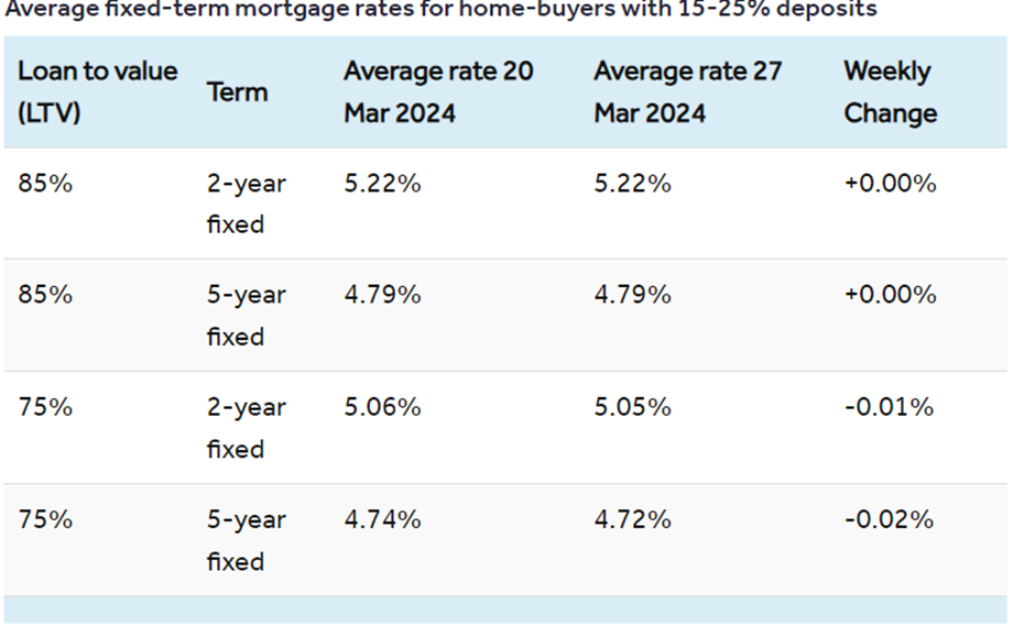Rightmove review and monitor mortgage rates regularly and have put together these useful guide tables with information on rates correct as of 27/3/24.